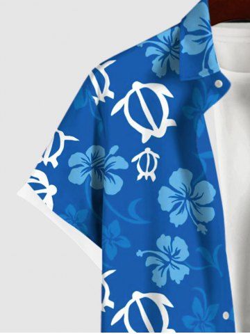 Chemise Décontractée Boutonnée Fleurie Tortue de Mer Imprimée avec Poche de Grande Taille pour Homme - Bleu - Bleu