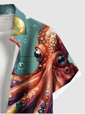 Chemise hawaïenne grande taille à imprimé fleurs de poulpe et bulles, boutonnée et ombrée, avec poches, pour homme - Vert - Vert