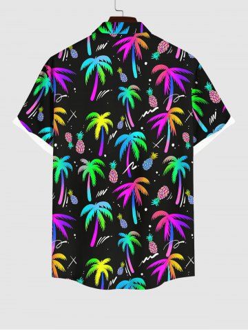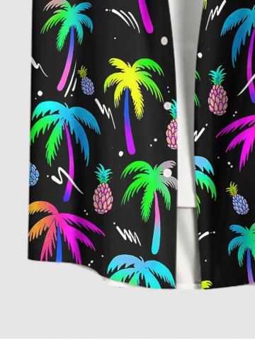 Chemise Décontractée Colorée Arbre Noix de Coco et Ananas Imprimés avec Poche Boutonnée de Grande Taille pour Homme - Noir - Noir