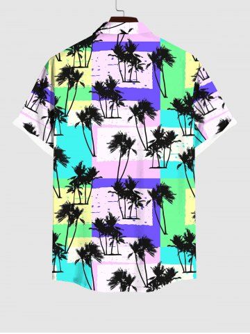 Chemise à Manches Courts > Chemise Décontractée en Blocs de Couleurs Arbre de Noix de Coco Imprimé Grande Taille avec Poche
