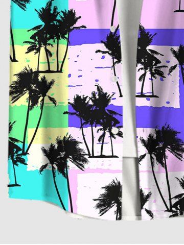 Chemise Décontractée en Blocs de Couleurs Arbre de Noix de Coco Imprimé Grande Taille avec Poche - Multi-a - Xl