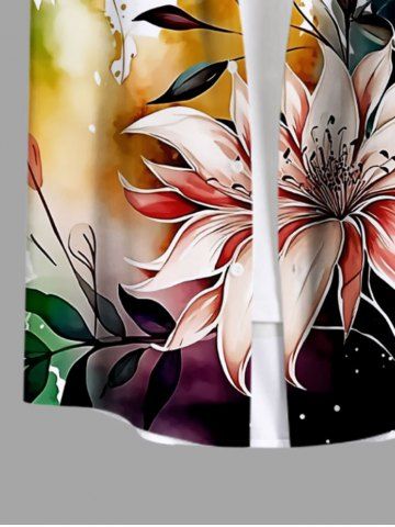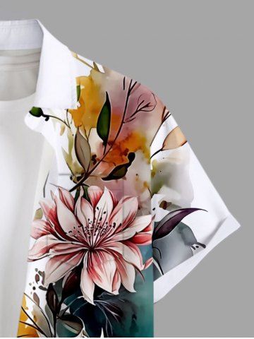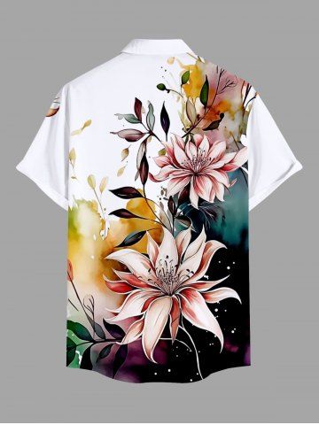 Chemise Décontractée en Blocs de Couleurs Fleur et Feuille Tropicale Imprimées avec Poche de Grande Taille pour Homme - Multi - Multi