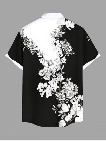 Chemise Décontractée en Blocs de Couleurs Fleur Feuille Imprimées avec Poche de Grande Taille - Noir - Noir