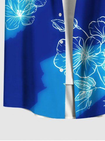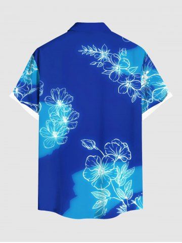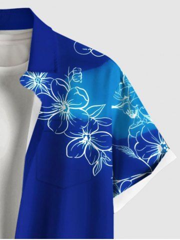Chemise Décontractée en Blocs de Couleurs Fleur Feuille Imprimés avec Poche de Grande Taille - Bleu - Bleu