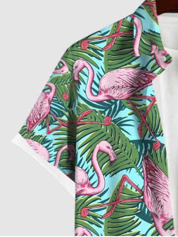Chemise à Manches Courts> Chemise Décontractée Flamant Feuille Imprimés avec Poche de Grande Taille avec Bouton