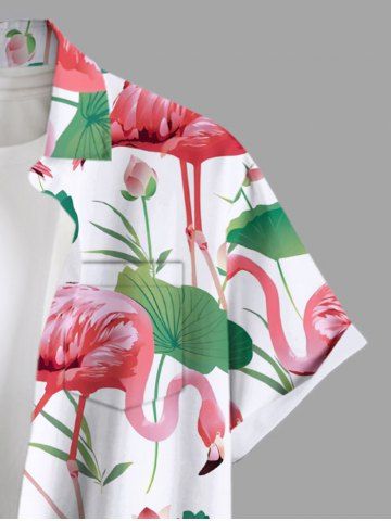 Chemise hawaïenne grande taille à imprimé flamant rose, fleur de lotus et feuilles pour homme - Blanc - Blanc