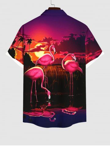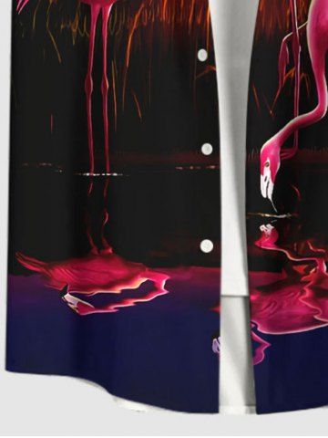 Chemise à Manches Courts> Chemise Décontractée Flamant Lune et Goutte D'Eau Imprimés avec Poche de Grande Taille pour Homme