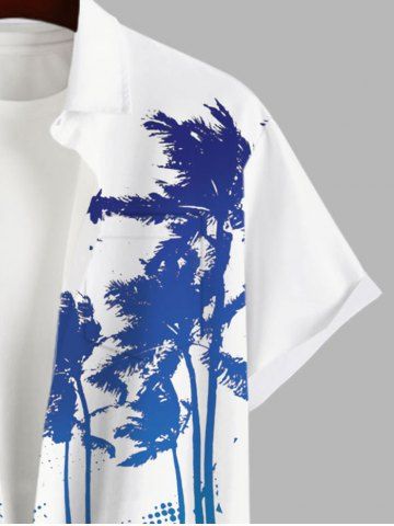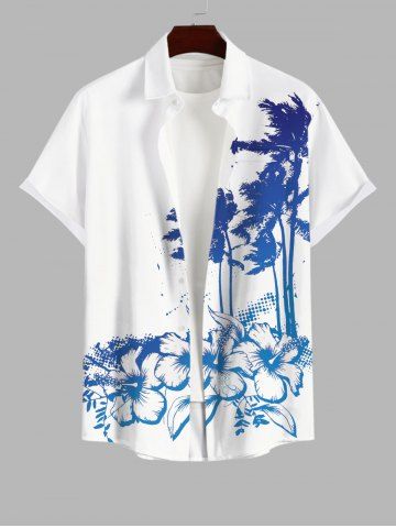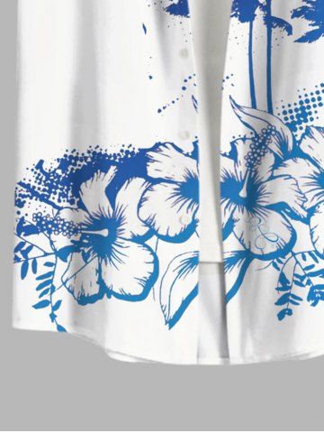 Chemise Décontractée Fleur Arbre Noix de Coco Imprimés avec Poche de Grande Taille pour Homme - Blanc - Blanc