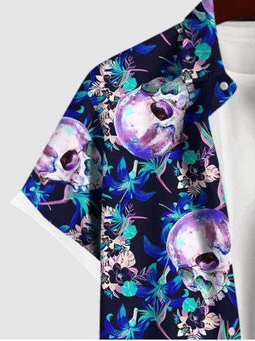 Chemise Décontractée Fleur Crâne Imprimée de Grande Taille avec Poche - Multi-a - S