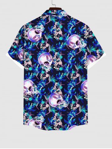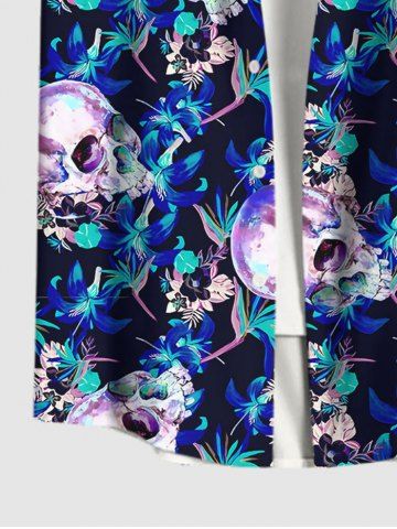 Chemise Décontractée Fleur Crâne Imprimée de Grande Taille avec Poche - Multi-a - 2xl