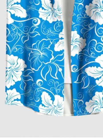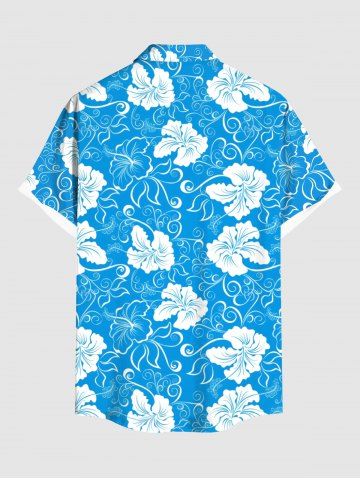 Chemise Décontractée Fleur D'Hibiscus et Poche de Grande Taille avec Boutons - Bleu - Bleu