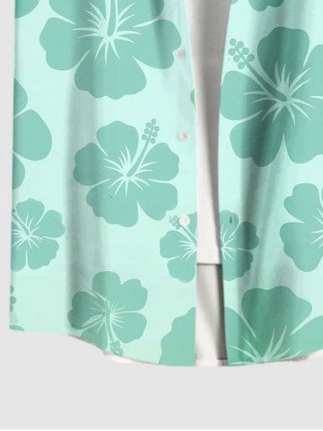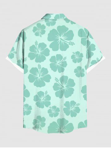 Chemise Décontractée Fleur D'Hibiscus Imprimée avec Poche de Grande Taille pour Homme - Vert Clair - Vert Clair