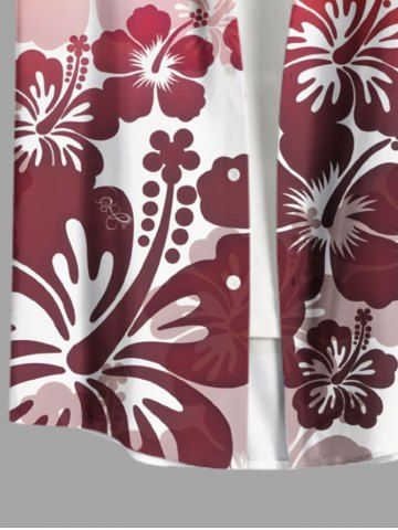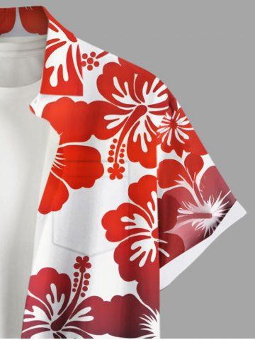 Chemise Décontractée Fleur D'Hibiscus Imprimée de Grande Taille avec Poche - Rouge - Rouge