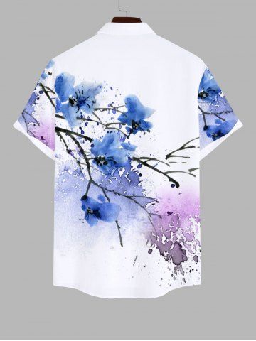 Chemise Décontractée Fleur et Peinture Eclaboussée Imprimés avec Poche Grande Taille - Blanc - Blanc