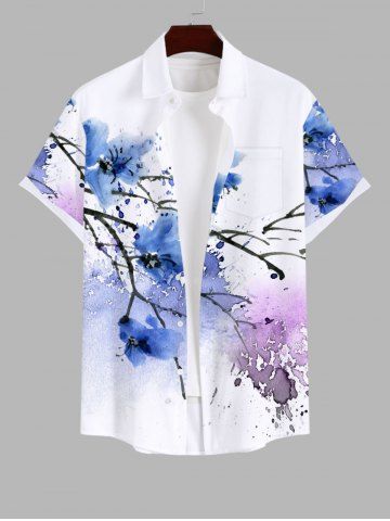 Chemise à Manches Courts> Chemise Décontractée Fleur et Peinture Eclaboussée Imprimés avec Poche Grande Taille