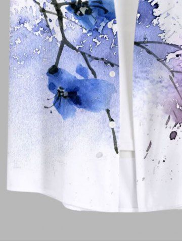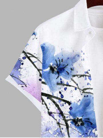 Chemise à Manches Courts> Chemise Décontractée Fleur et Peinture Eclaboussée Imprimés avec Poche Grande Taille