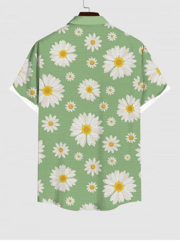 Chemise Décontractée Fleur Marguerite Imprimée de Grande Taille avec Poche - Vert Clair - Vert Clair