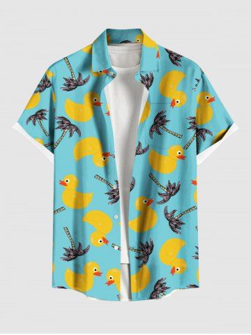 Chemise à Manches Courts> Chemise Décontractée Fond de Teint Arbre de Noix de Coco Imprimé avec Poche de Grande Taille pour Homme