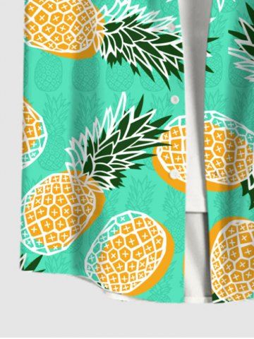 Chemise Décontractée Fruits et Ananas Imprimés de Grande Taille avec Poche en Avant - Vert - Vert
