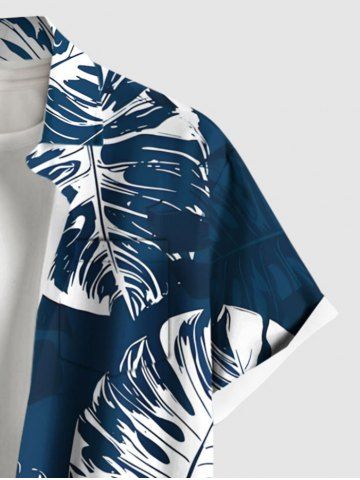 Chemise Décontractée Hawaiienne Imprimé Feuilles Tropicales Grande Taille avec Poche - Bleu Profond - L