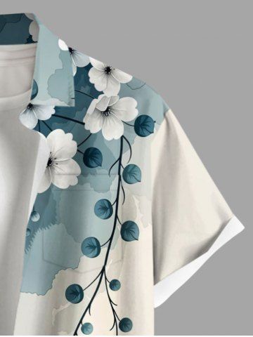Chemise à Manches Courts> Chemise Décontractée Imprimé Branche Floral à L'Encre avec Poche Grande Taille pour Homme