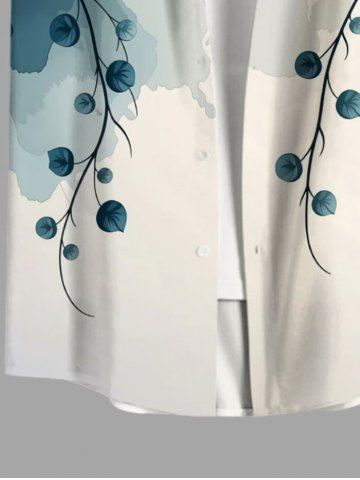 Chemise Décontractée Imprimé Branche Floral à L'Encre avec Poche Grande Taille pour Homme - Bleu - Bleu