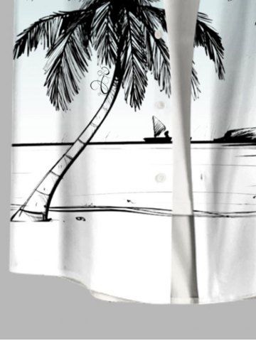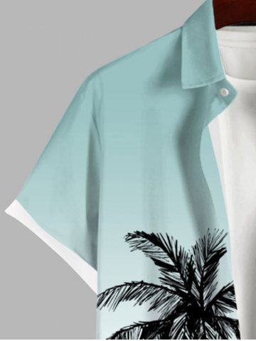 Chemise à Manches Courts> Chemise Décontractée Imprimé Cocotier et Chiffre 8 Grande Taille avec Poche
