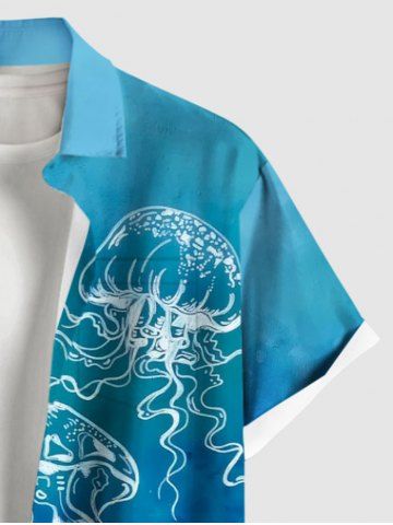 Chemise à Manches Courts> Chemise Décontractée Méduse Imprimée avec Poche de Grande Taille avec Boutons