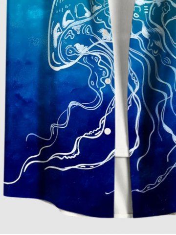Chemise Décontractée Méduse Imprimée avec Poche de Grande Taille avec Boutons - Bleu - Bleu