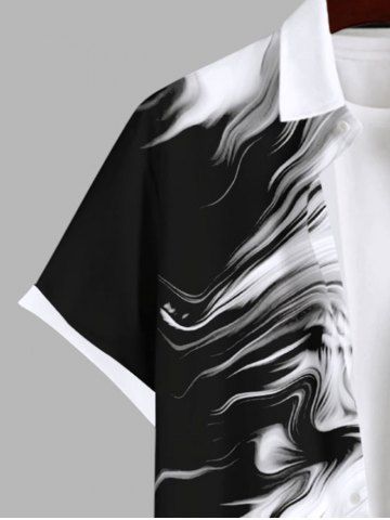 Chemise Décontractée Peinture à L'Encre Tribale Fumée Imprimée avec Poche de Grande Taille pour Homme - Multi-a - 2xl