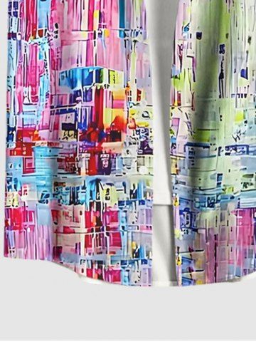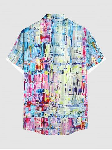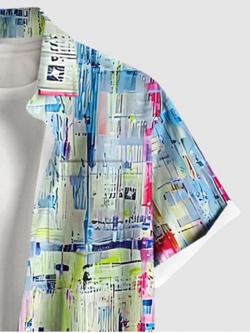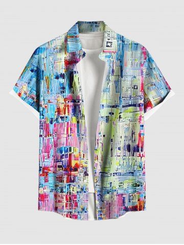 Chemise à Manches Courts> Chemise Décontractée Peinture à L'Huile en Blocs de Couleurs avec Bouton de Grande Taille pour Homme