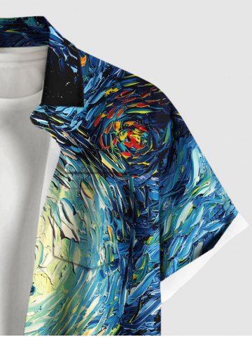 Chemise Décontractée Peinture à L'Huile Lune Loup Imprimé avec Poche de Grande Taille - Bleu - Bleu