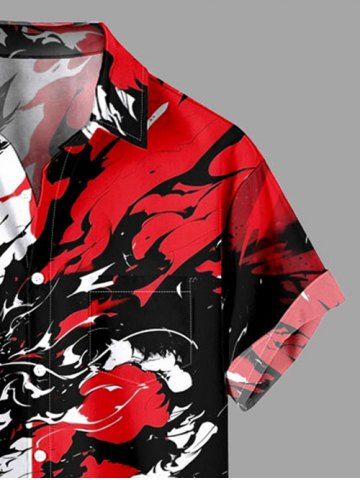 Chemise Décontractée Peinture Eclaboussée Dragon D'Encre Contrastée Imprimée avec Poche de Grande Taille pour Homme - Rouge - Rouge