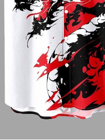 Chemise Décontractée Peinture Eclaboussée Dragon D'Encre Contrastée Imprimée avec Poche de Grande Taille pour Homme - Rouge - Rouge