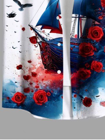 Chemise Décontractée Peinture Eclaboussée Rose et Oiseau Imprimés de Grande Taille en Mousseline de Soie pour Homme - Blanc - Blanc