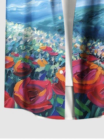 Chemise à Manches Courts> Chemise Décontractée Peinture Rose Fleur et Nuage Imprimées avec Poche de Grande Taille pour Homme