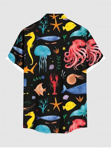 Chemise Décontractée Pieuvre de Poisson Colorée avec Poche de Grande Taille - Noir - Noir