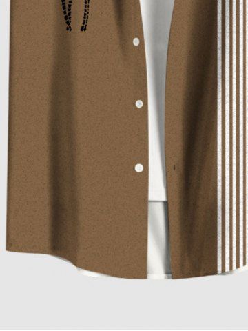 Chemise Décontractée Rayée Cocotier Imprimé en Blocs de Couleurs avec Poche de Grande Taille - Café - Café