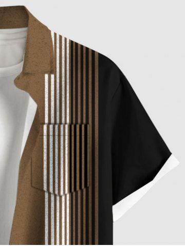 Chemise à Manches Courts> Chemise Décontractée Rayée Cocotier Imprimé en Blocs de Couleurs avec Poche de Grande Taille