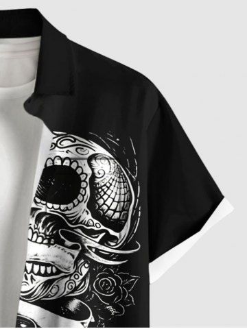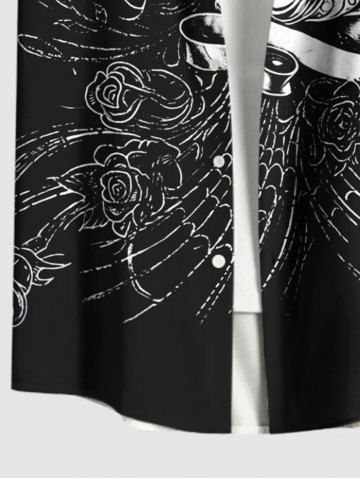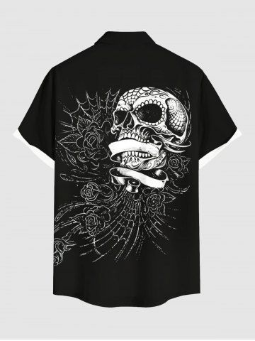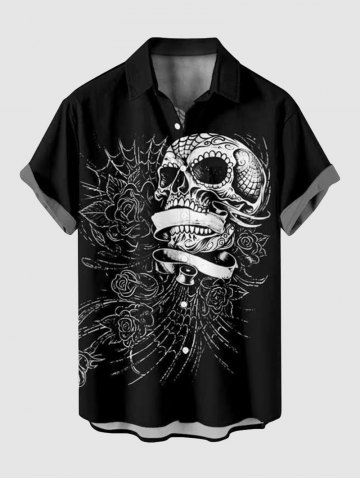 Chemise Décontractée Rose Crâne et Toile D'Araignée Imprimés avec Poche de Grande Taille pour Homme - Noir - Noir