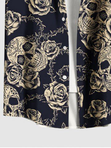 Chemise Décontractée Rose Crâne Imprimés avec Poche de Grande Taille avec Boutons pour Homme - Noir - Noir
