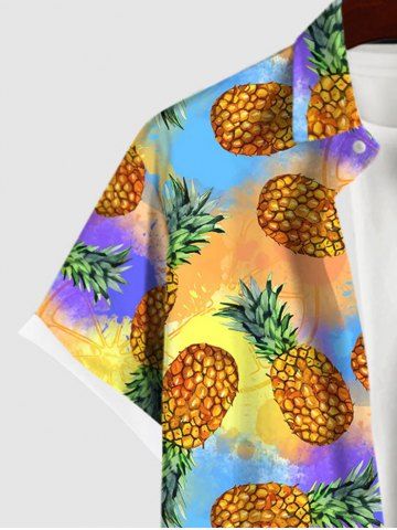 Chemise à Manches Courts> Chemise Décontractée Teintée Ananas Imprimé en Blocs de Couleurs avec Poche de Grande Taille