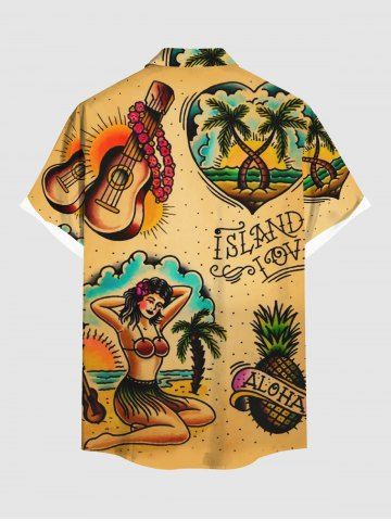 Chemise Dorée Arbre Noix de Coco et Plage Imprimés de Grande Taille avec Poche - Deep Yellow - M