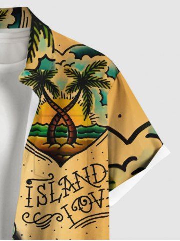 Chemise Dorée Arbre Noix de Coco et Plage Imprimés de Grande Taille avec Poche - Deep Yellow - 6xl