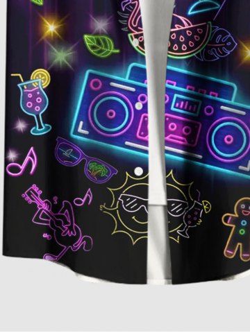 Chemise Dorée Pastèque et Arbre de Noix de Coco Imprimés de Grande Taille avec Poche - Noir - Noir