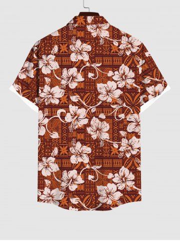 Chemise à Manches Courts > Chemise Drap Grande Taille Claire-Voie Boutonnée à Imprimé Floral