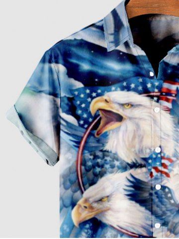 Chemise à Manches Courts> Chemise Drapeau Américain Aigle et Nuage Imprimés avec Poche Boutonnée de Grande Taille pour Homme