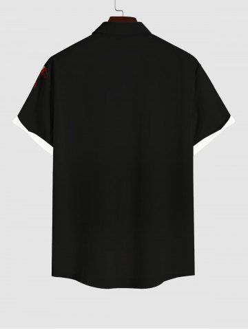 Chemise Drapeau Américain Croisée Imprimé avec Poche de Grande Taille avec Boutons - Noir - Noir