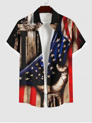 Chemise à Manches Courts> Chemise Drapeau Américain Croisée Imprimé avec Poche de Grande Taille avec Boutons