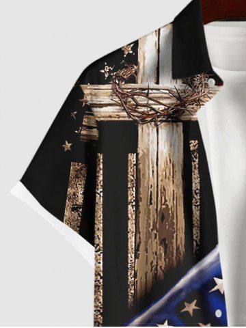 Chemise Drapeau Américain Croisée Imprimé avec Poche de Grande Taille avec Boutons - Noir - Noir